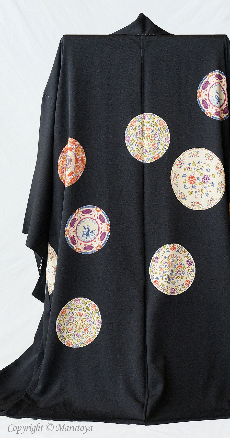 この絵羽織に染め描かれているデザインは古伊万里の器に施された模様。