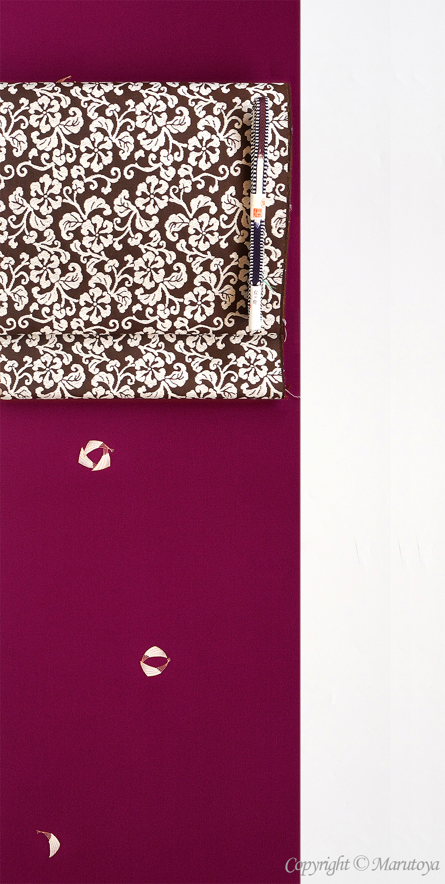 丁子唐草の白と背景の栗色は、穏やかなコントラストを映し、現代的な色彩感性として仕上げられています。