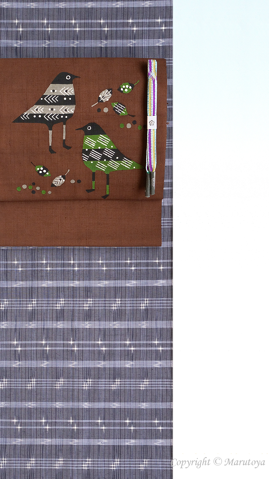 | * | 岡本隆志 制作 型絵染め帯『鳥と落ち葉』との着物あわせ.. |