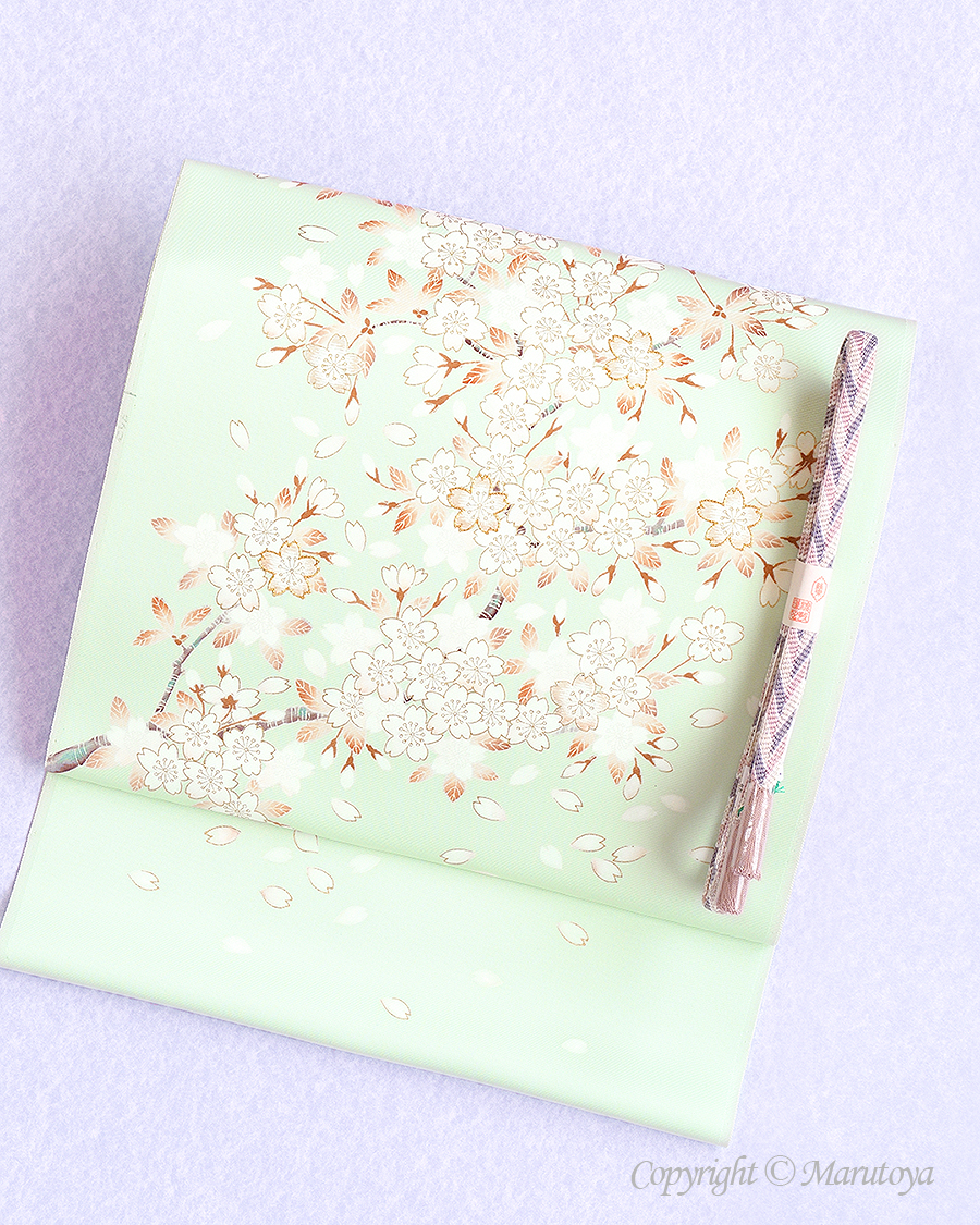 桜への想いを耽美的に美意識で染め描いた真糊糸目友禅染め帯です。