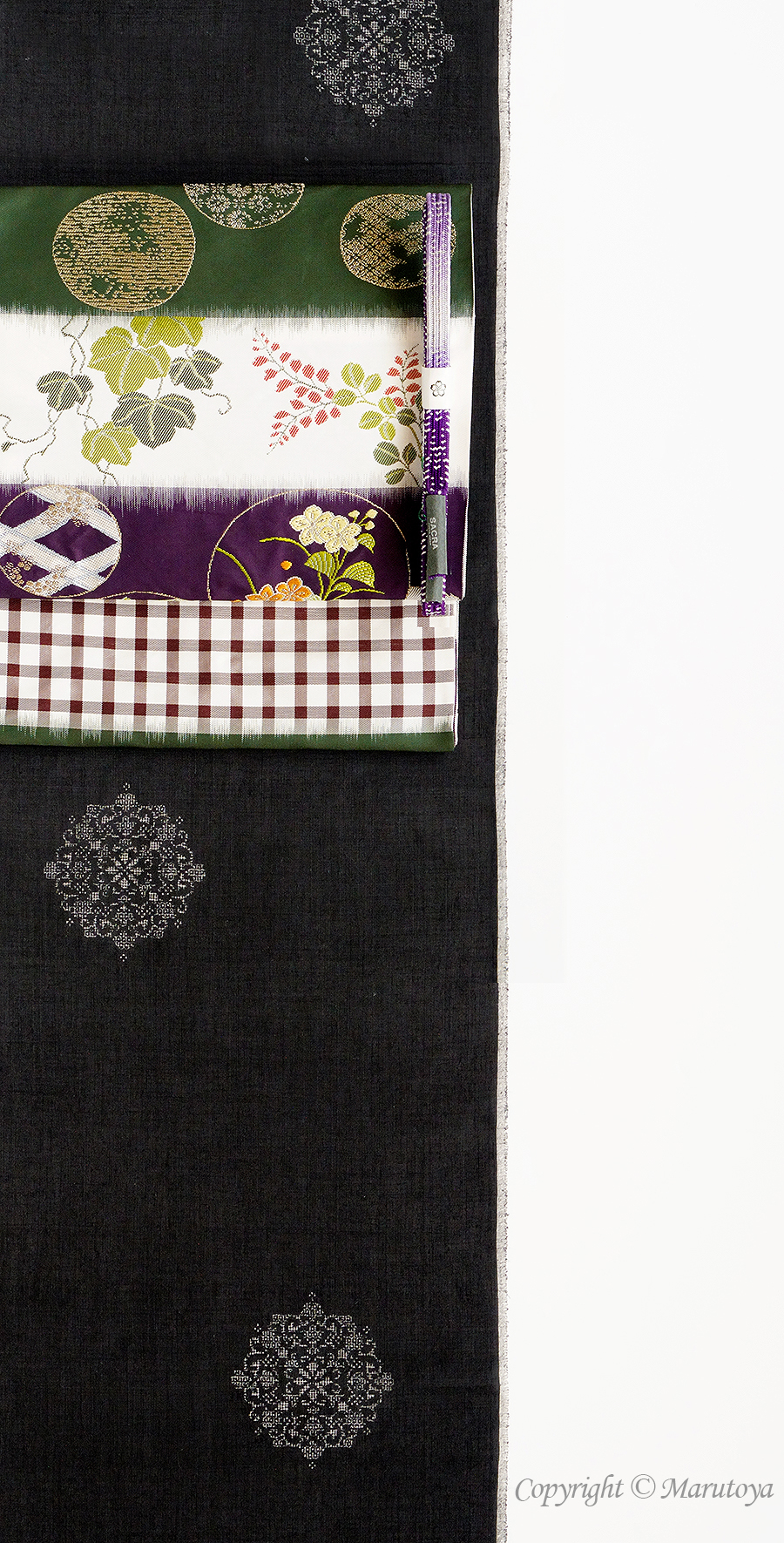 * | 本場結城紬:『墨黒 華文紋様』との帯あわせ |