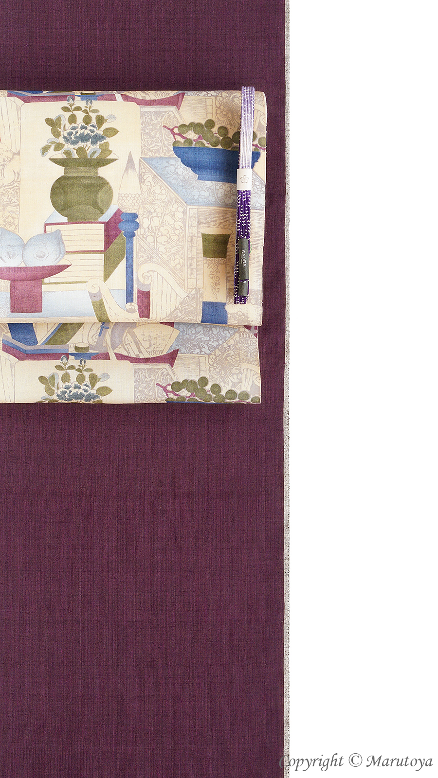 | ・ | 生紬摺り型友禅染め帯:『李朝の南画』(制作:染繍舗 多ち花)とあわせました。 |