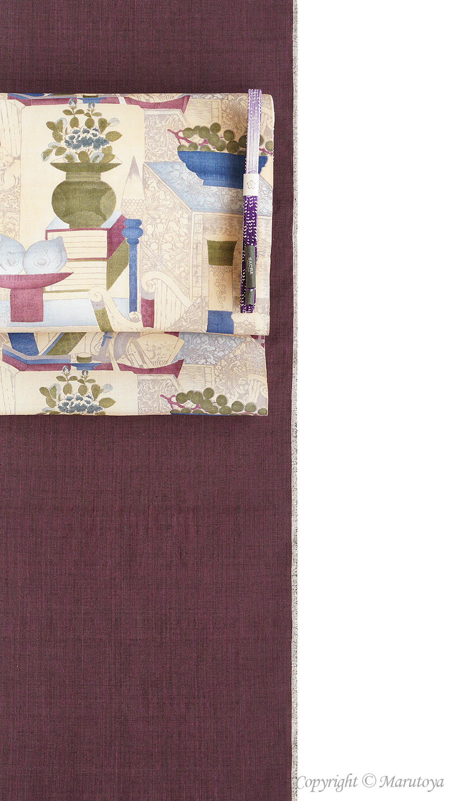 ・ | 生紬摺り型友禅染め帯:『李朝の南画』(制作:染繍舗 多ち花)とあわせました。 |