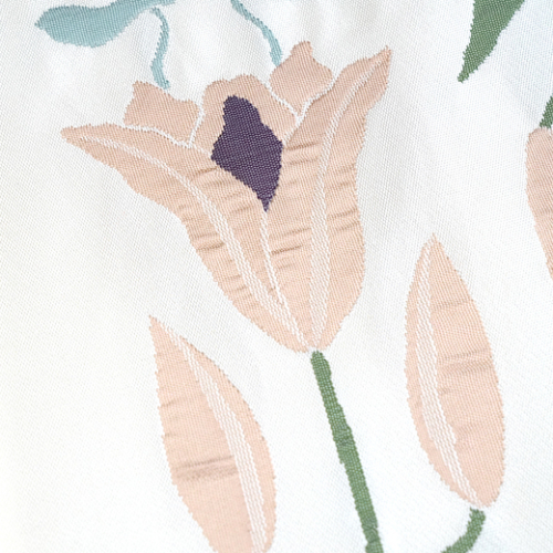 伝統的な西陣織感覚はまったく感じられませんが、装飾的な空気感を漂わせながら(このデザインなんですが、何となくアール・デコっぽく感じられませんか)、時代性を想わせない垢抜けした美意識が伝わって来ます。